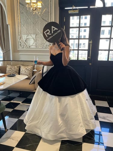 فستان بتصميم مميز و عصري و مبتكر خاص بـتصاميم رغداء الفريدة من نوعها