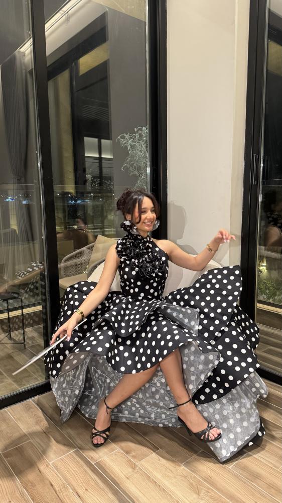 فستان بتصميم مميز و عصري و مبتكر خاص بـتصاميم رغداء الفريدة من نوعها