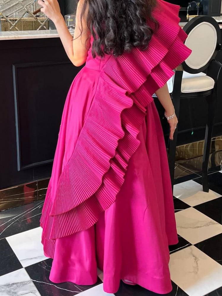 فستان فوشي للحفلات بتكسير بليسيه .. مكسي مناسبة للحفلات الرسميه وحفلات الزفاف