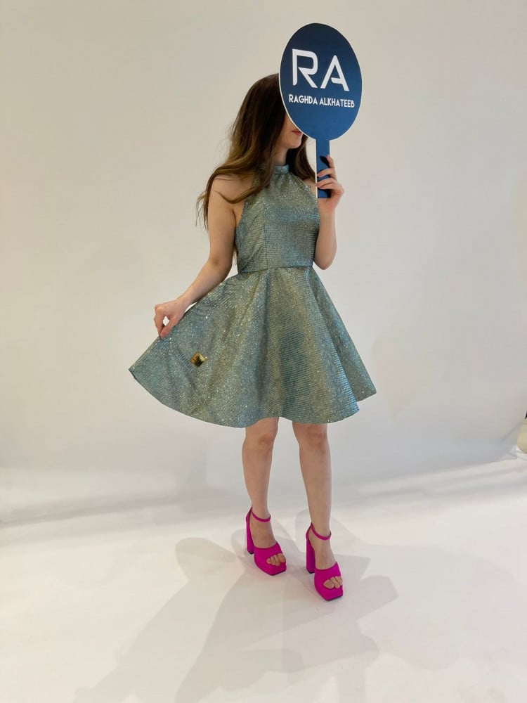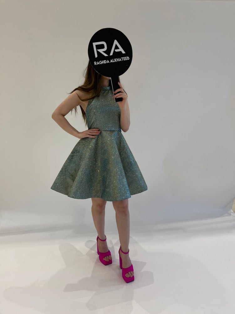 فستان بلمعة بارقة للحفلات بخامة مميزه .. قصير مناسبة للحفلات